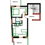 Odaların giyinme alanı, minibar, kanepe gibi imkanlarının yanı sıra elektrikli su ısıtıcısı, fırın, mutfak gereçleri ile tam donanımlı mutfak mevcuttur. Daire, 1 yatak odası ve ayrı tuvalet, duş ile donatılmış 1 banyo odasından oluşmaktadır.